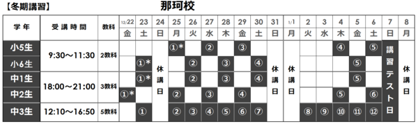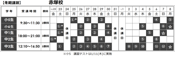 ★2017-18 冬期講習日程★